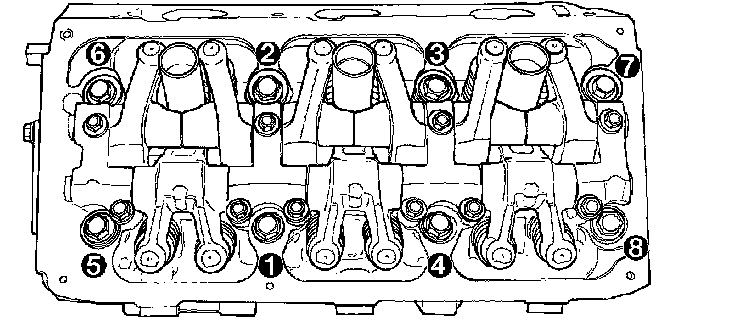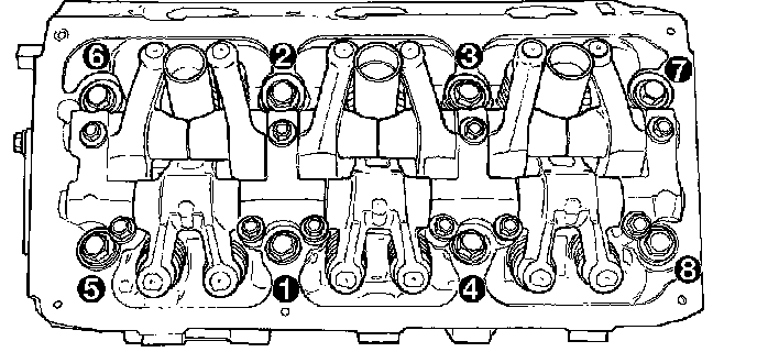 4. Tighten the cylinder head bolts in the sequence shown in. Using the 4 step torque-turn method, tighten according to the following torque values:
