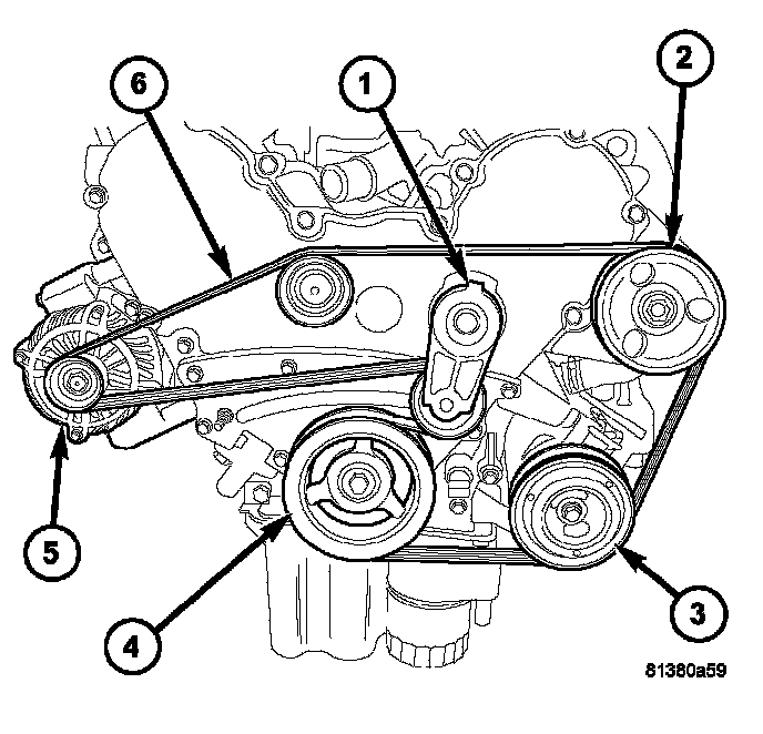 6. Remove the accessory drive belt (6).