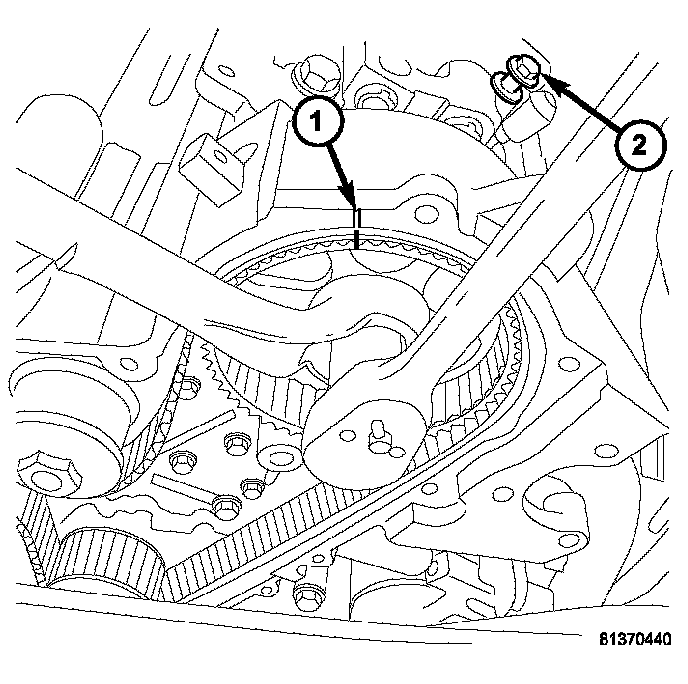 23. Remove the right rear camshaft thrust plate (1).