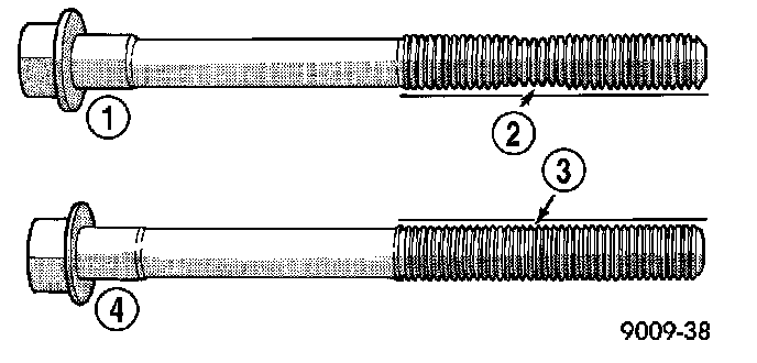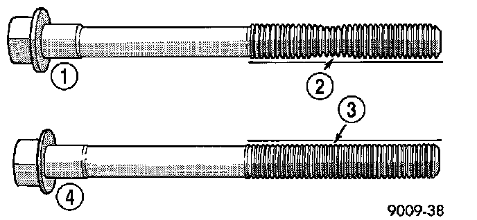 The cylinder head bolts are tightened using a torque plus angle procedure. The bolts must be examined BEFORE reuse. If the threads are necked down the bolts must be replaced.