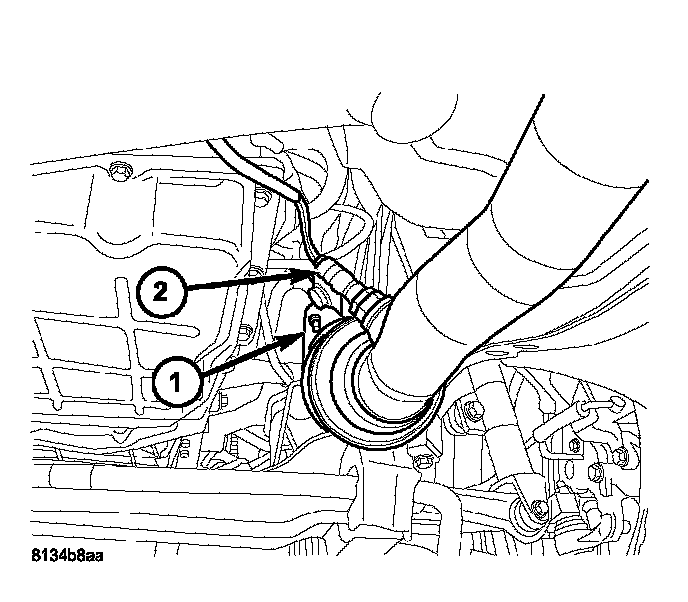14. Disconnect both oxygen sensor harness connectors (1,2).