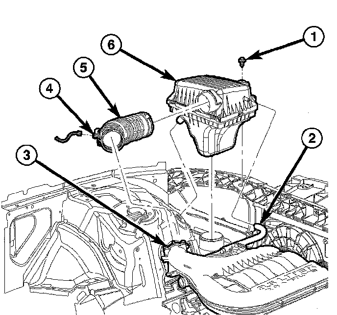 3. Connect the inlet air duct (5) to the housing (6) and tighten clamp.