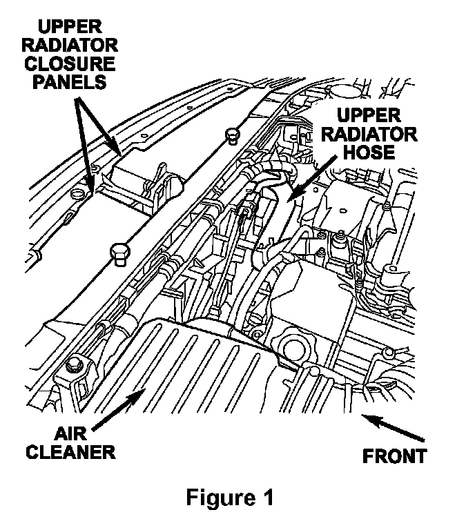 1. Open the hood.2. Remove both upper radiator closure panels (Figure 1).