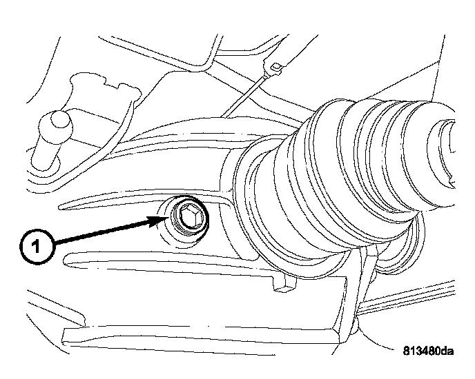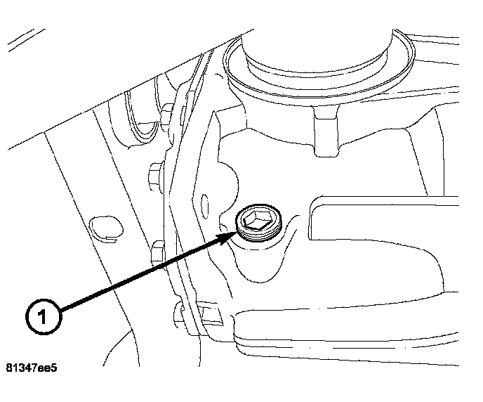 5. Remove fill plug (1) and fill rear axle with 1.2 Liters (1.3 quarts) Mopar Synthetic Gear & Axle Lubricant 75W140 and insure axle is filled to the bottom of the fill hole.