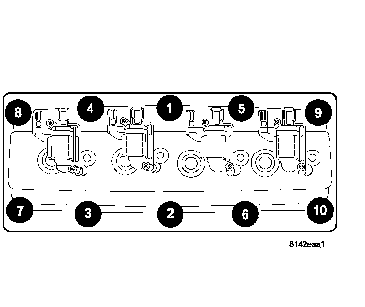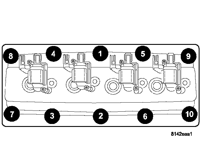 4. Tighten the rocker shaft bolts to 22 Nm (195 inch lbs.) torque, using the sequence provided.