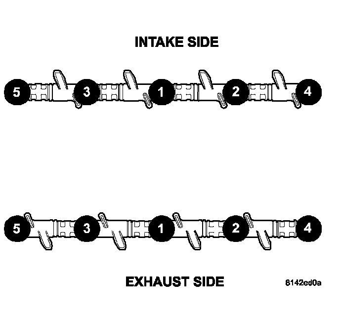 CAUTION: The rocker shaft assemblies are not interchangeable between intake and exhaust. The intake rocker arms are marked with an "I".