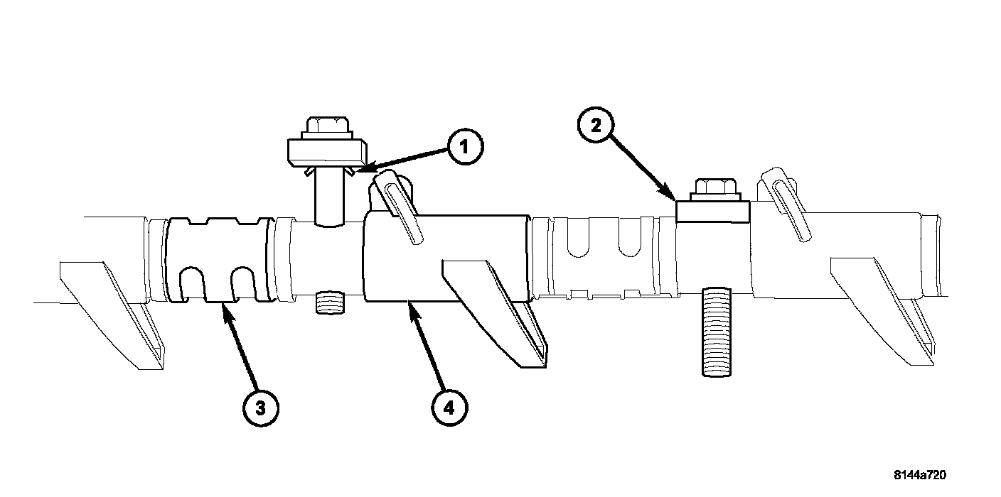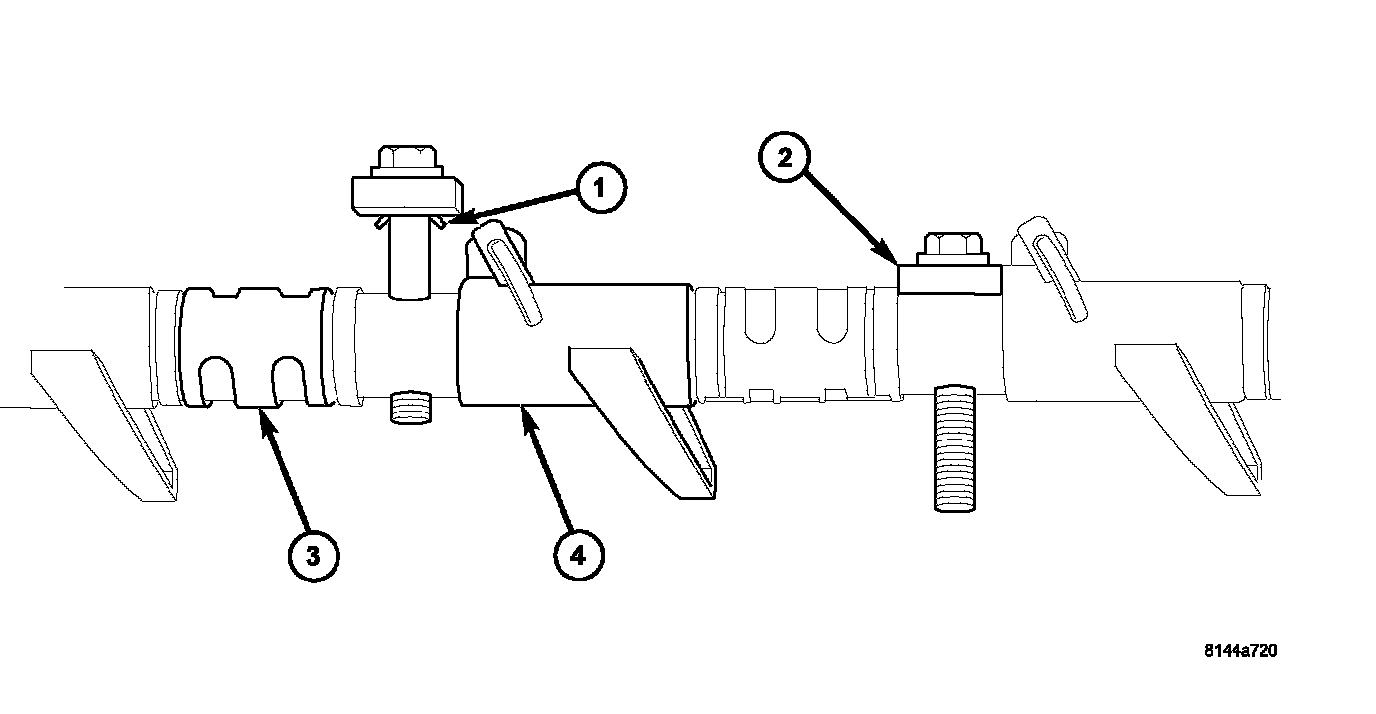 CAUTION: Verify that pushrod is installed into rocker arm (4) and tappet correctly while installing rocker shaft assembly. Recheck after rocker shaft has been torqued to specification.