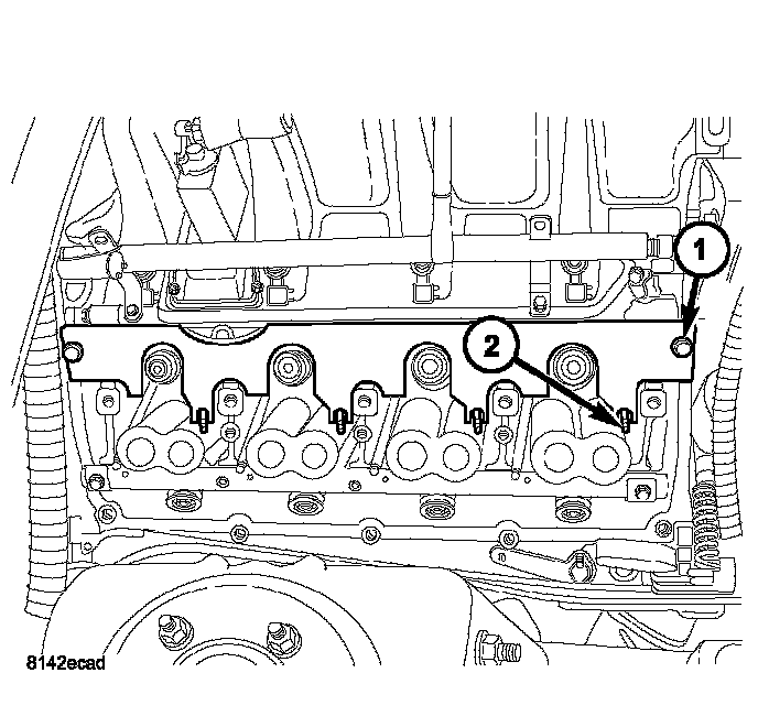 2. Install the pushrod retaining plate (1) special tool 9070.