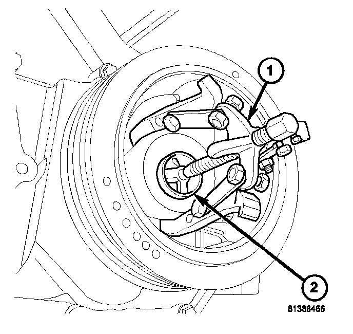15. Remove crankshaft damper (2).