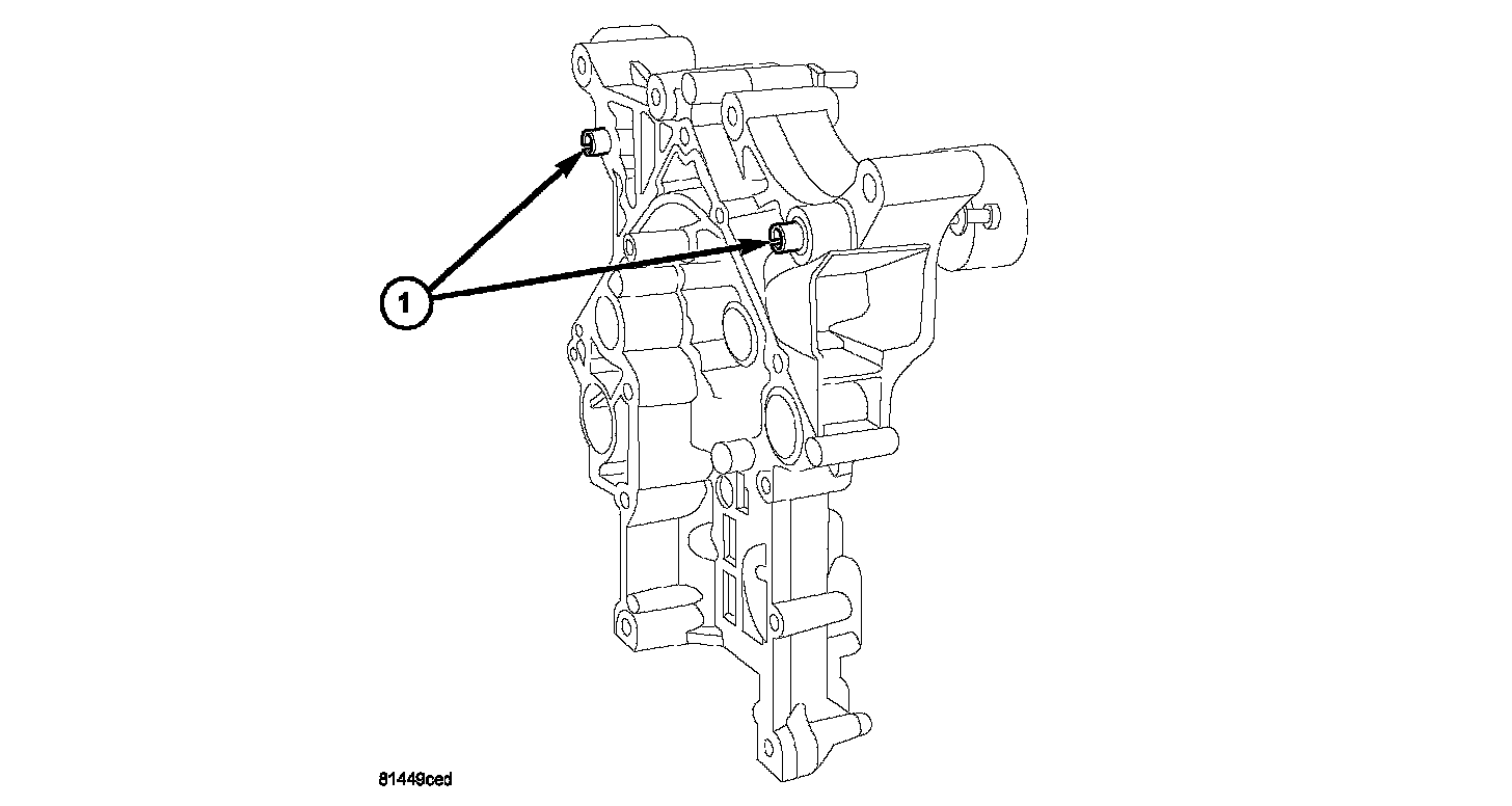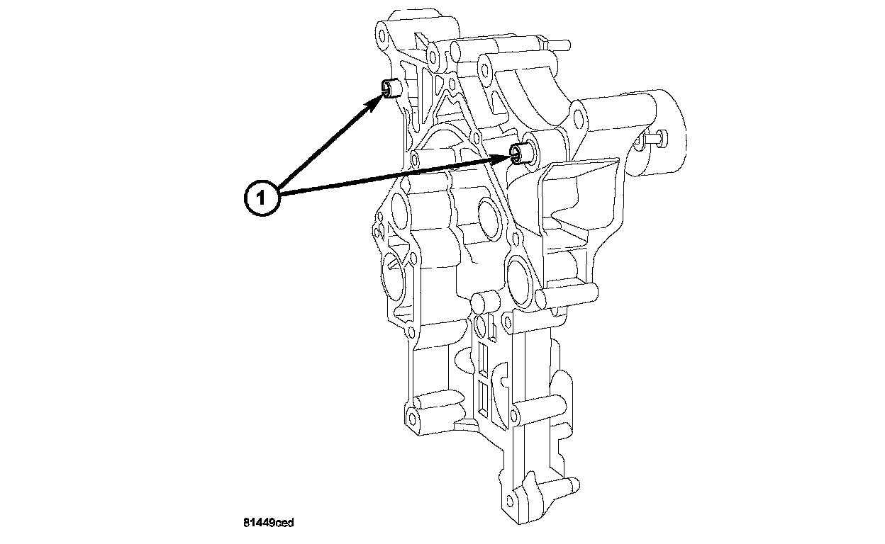2. Verify that the slide bushings (1) are installed in timing cover.