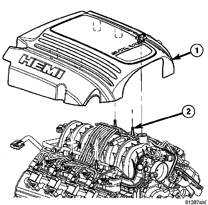 23. Install the engine cover (1).