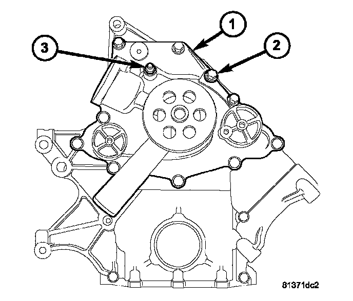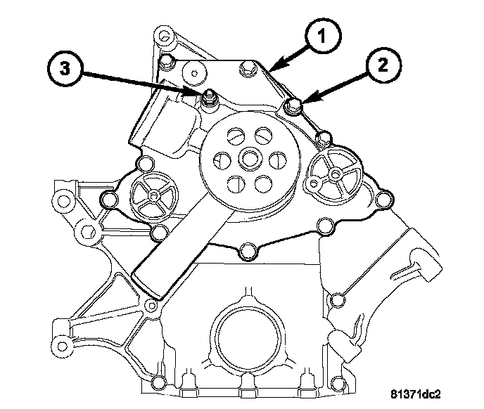 NOTE: The water pump mounting bolts (2) are different lengths. Note the location of the water pump mounting bolts (2).