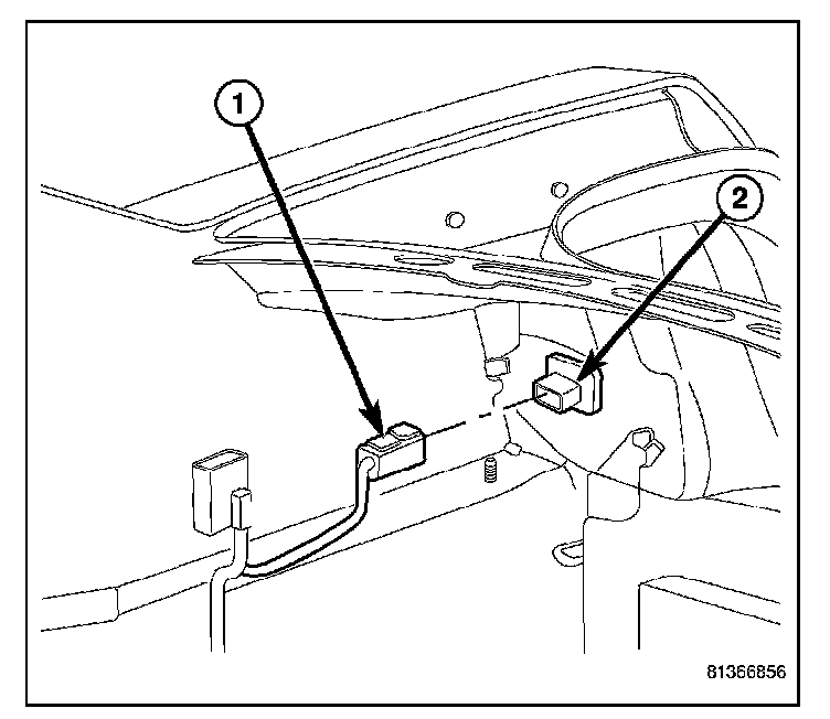 2. From inside the trunk, peel back the trunk trim and disconnect the electrical connector.