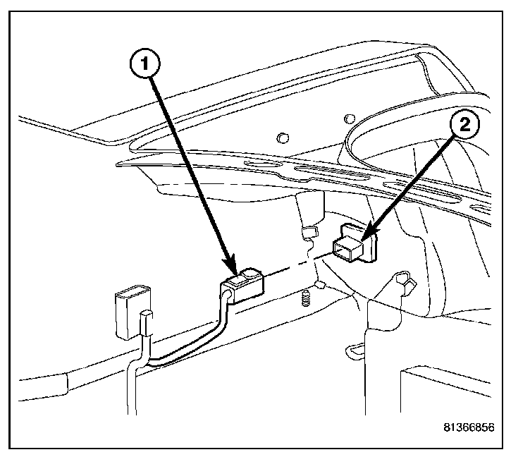 3. From within the trunk, connect the electrical connector (1) to tail lamp unit (2).
