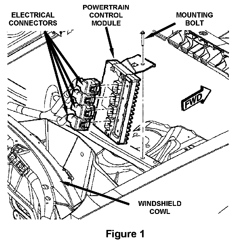 3. Remove the PCM bracket-to-body mounting bolt (Figure 1).