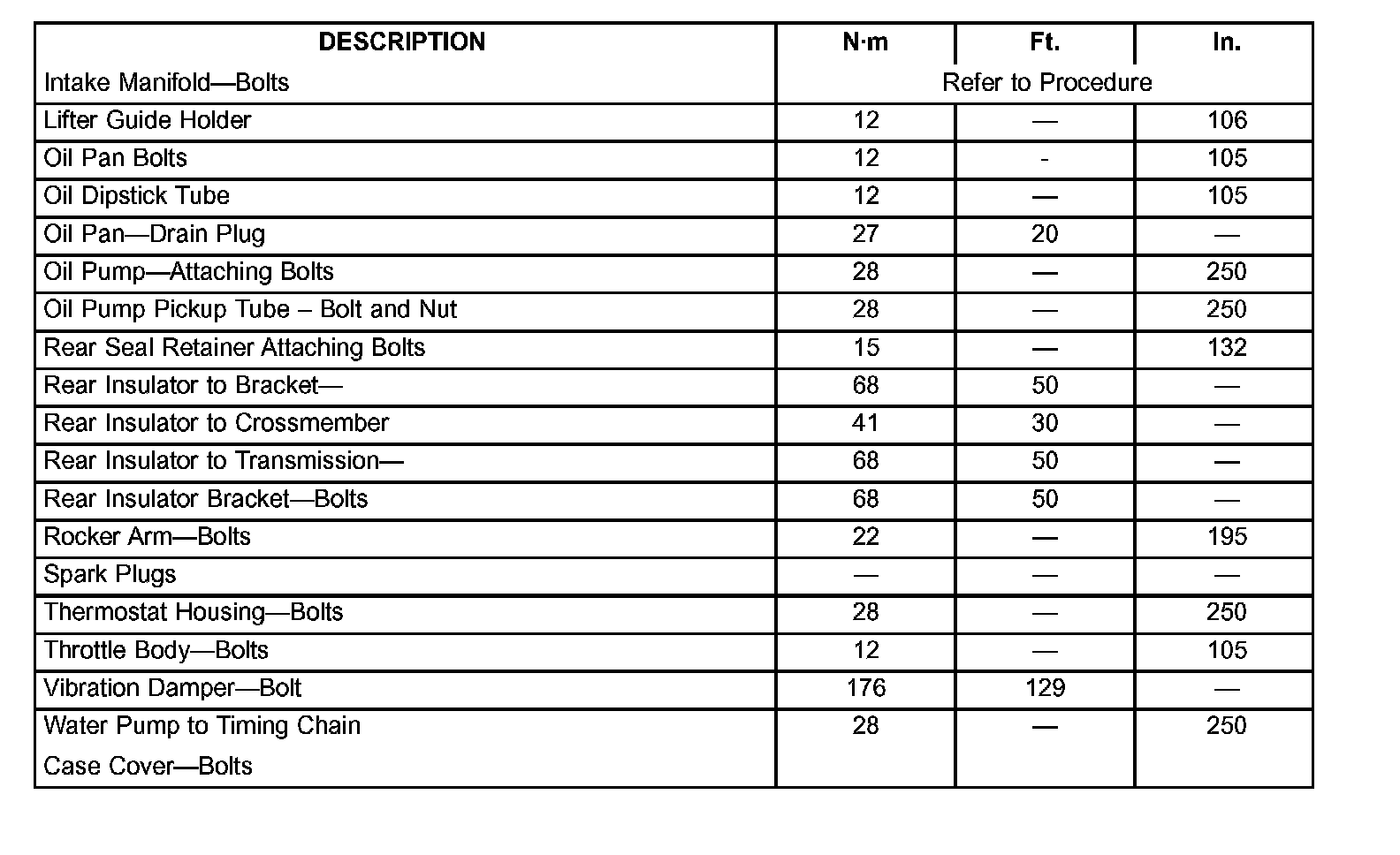 Engine Torque Specifications