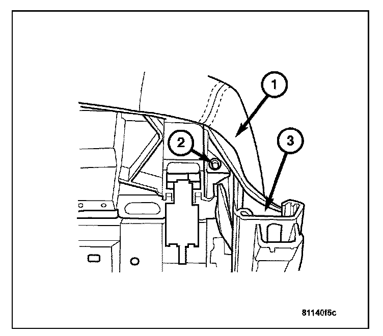 2. Remove the bolt (2) on the front seat (1) to the frame (3).
