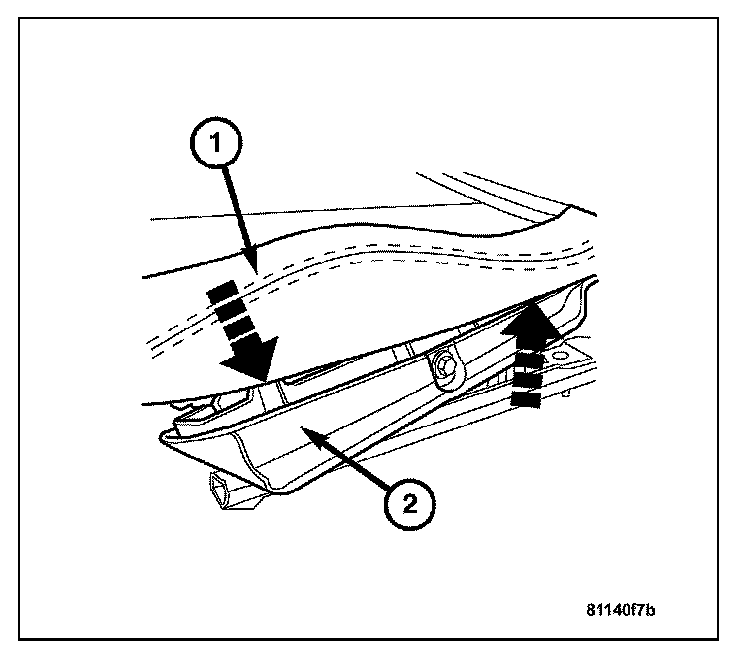 1. Install both springs (1) into the plate springs with the narrow coils pointing downward at an angle and insert into humps on cushion shell (2). Push the seat cushion toward the rear below the seat back.
