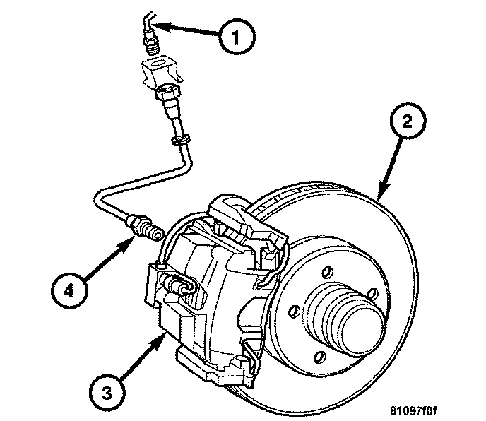 10. Remove the brake hose (4) from the caliper (3).