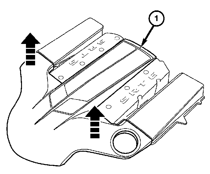 9. Install the engine cover (1). Align the engine cover retaining clips to the engine rubber mounts, and push down firmly to connect engine cover to the rubber mounts.