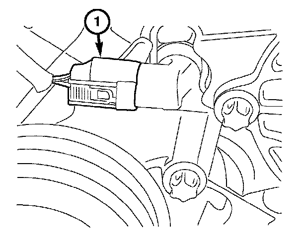 3. Install the engine coolant temperature sensor and retaining clip (1).