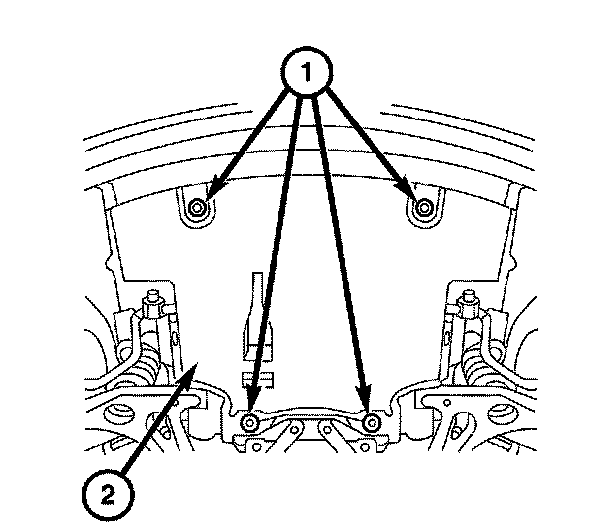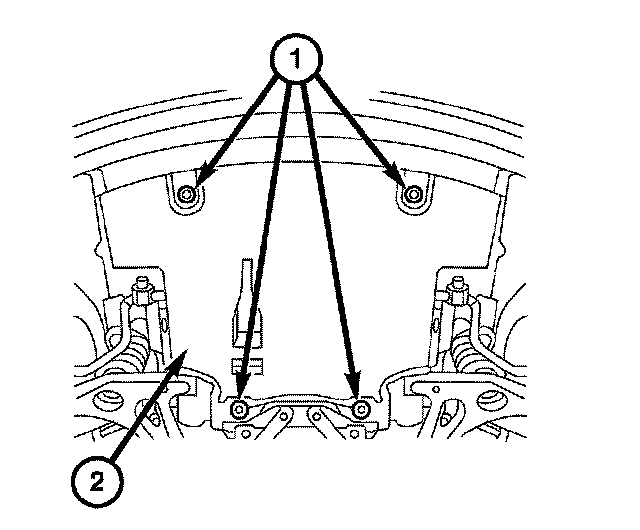 19. Install the lower splash shield (2). Tighten the screws (1) to 5 Nm (44 inch lbs.).