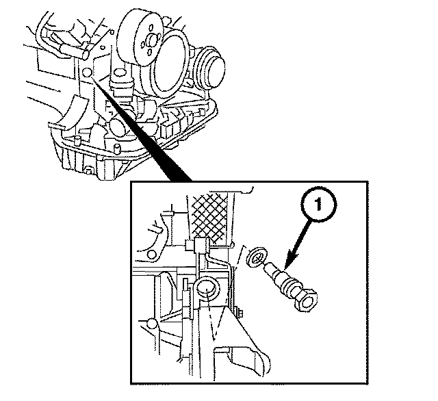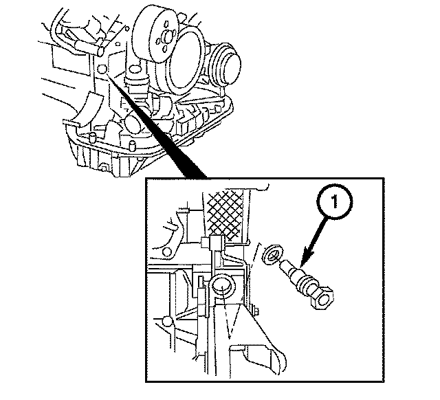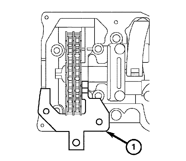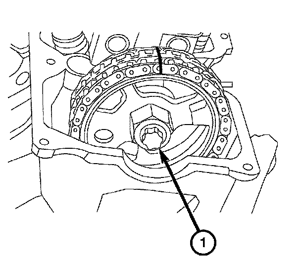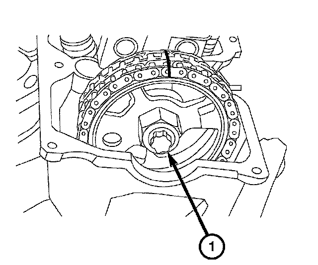 9. Install the timing chain tensioner (1). Tighten the timing chain tensioner to 80 Nm (60 ft. lbs.).