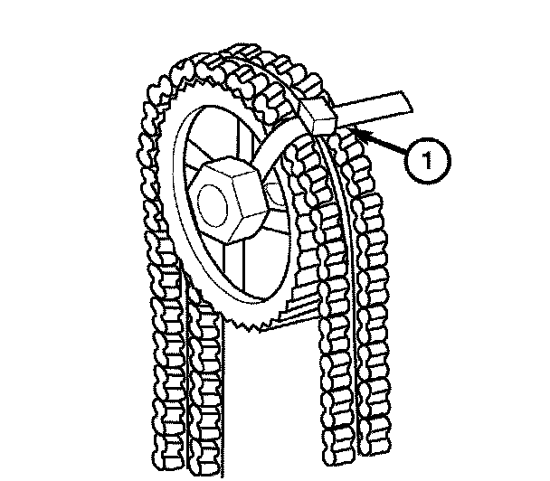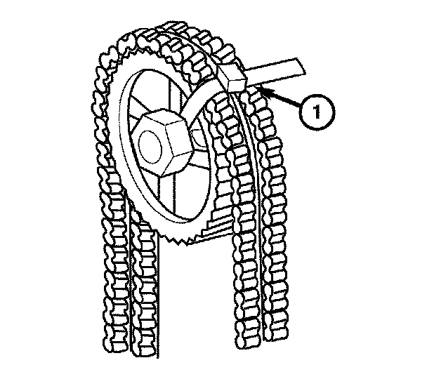 19. Use a cable tie (1) to secure the timing chain to the right hand camshaft sprocket.