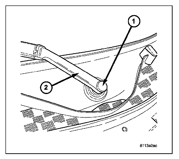 1. Install the pivot end of the wiper arm (2) on the wiper pivot shaft.