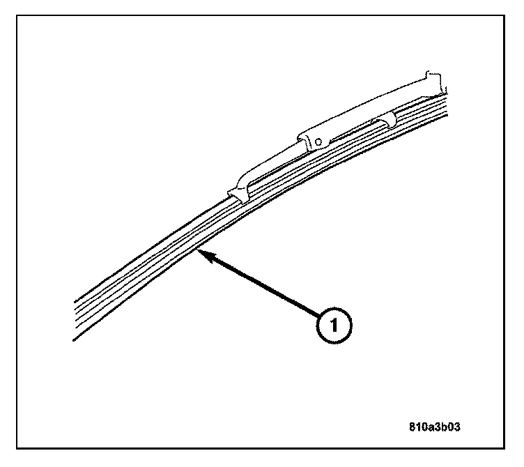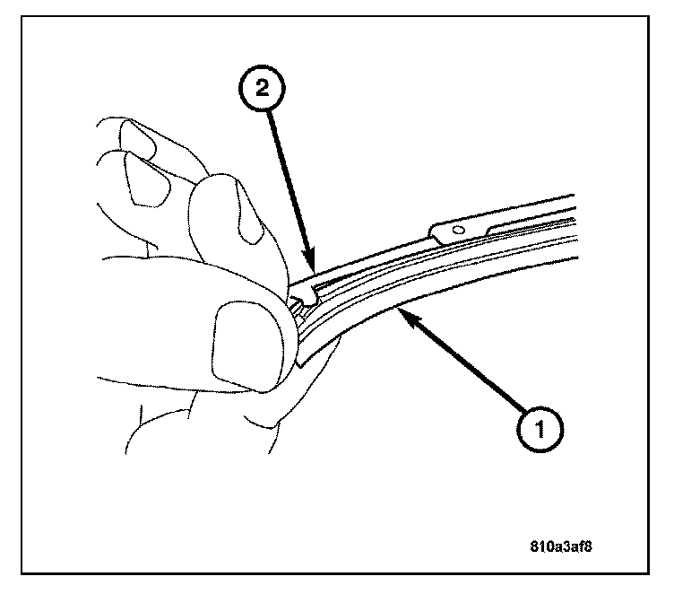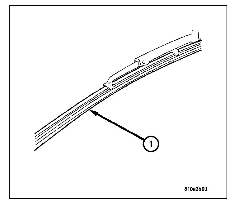 3. Install the retainer springs (1) by sliding the springs onto the edges of the wiper blade.