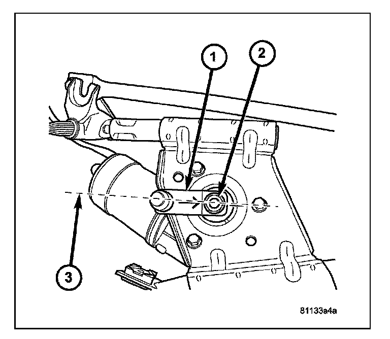4. Scribe a reference mark (3) on both the wiper module and the crank arm for proper alignment during reassembly.