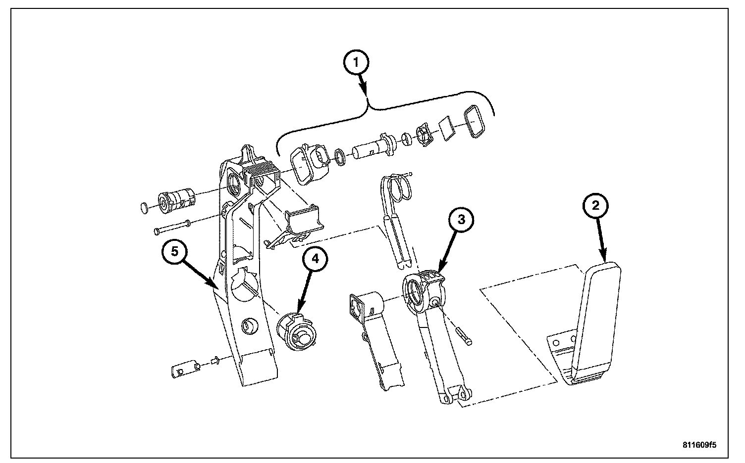 The Accelerator Pedal Position Sensor (1) is located inside the Accelerator Pedal.