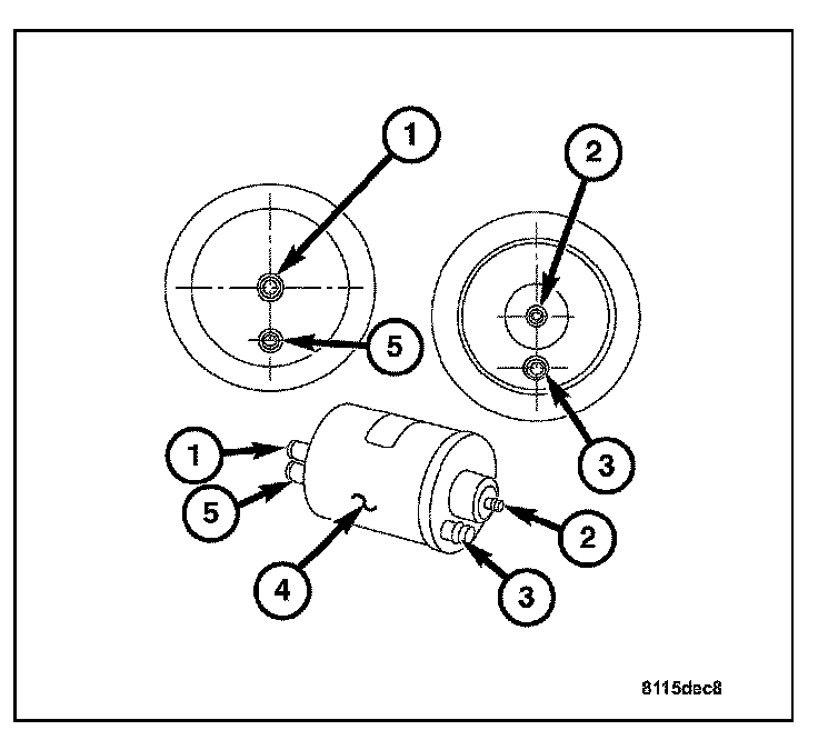 The fuel flows through the Fuel Filter (1) trapping any fuel impurities that may lie in the bottom of the tank. The Fuel Filter can not be serviced separately from the pressure regulator, the entire Fuel Filter/Fuel Pressure Regulator must be replaced as an assembly. For complete Fuel Filter/Fuel Pressure Regulator removal procedures.
