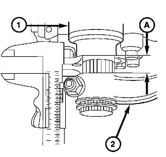 2. Measure the distance of point "A" between the pitman arm (2) and the steering gear (1) using a caliper gauge.
