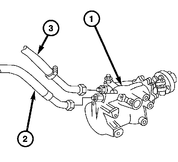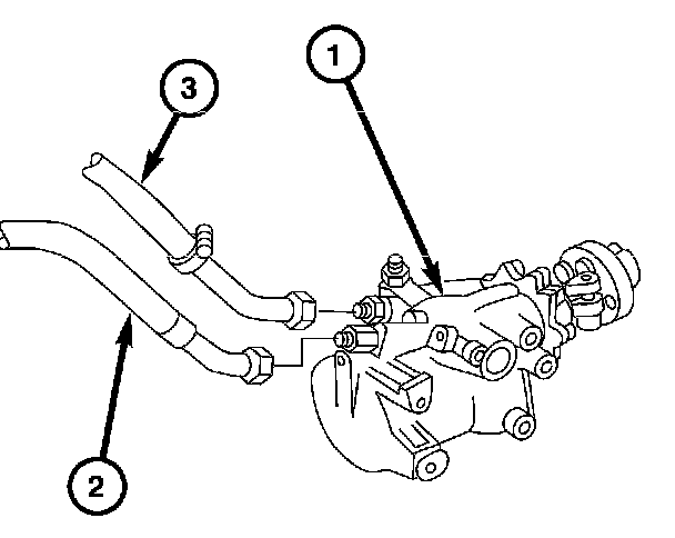5. Remove the power steering return line (3) and the high-pressure line (2).