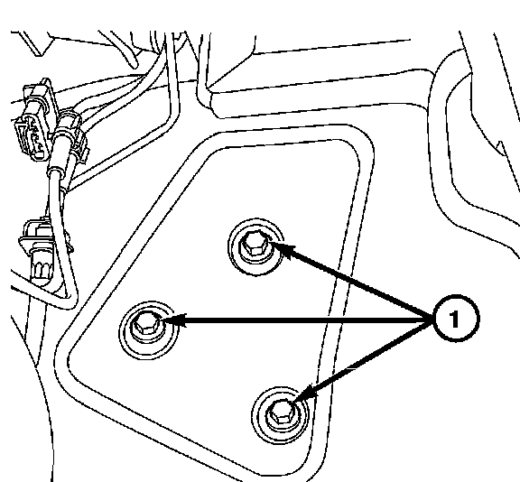 12. Remove the three bolts (1) attaching the steering gear to the body of the vehicle, carefully move steering gear out of the steering shaft then remove the steering gear from the vehicle.