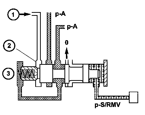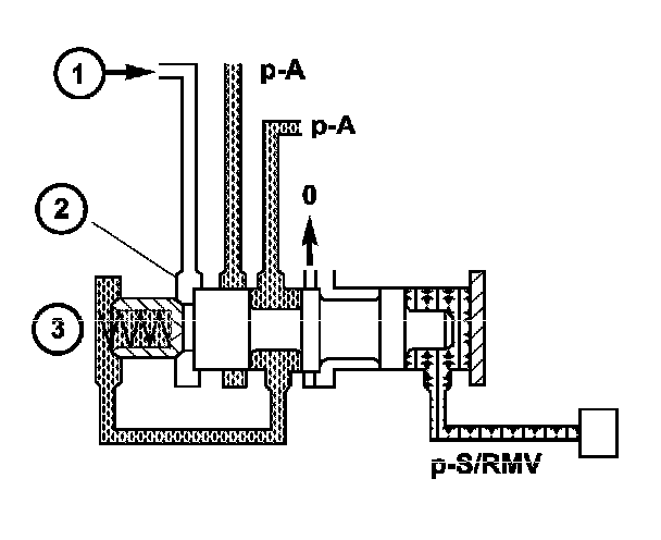 The regulating valve pressure is regulated at the regulating valve pressure regulating valve in relation to the working pressure (p-A) up to a maximum pressure of 8 bar (116 psi). It supplies the modulating pressure regulating solenoid valve, the shift pressure regulating solenoid valve and the shift valve pressure regulating valve.