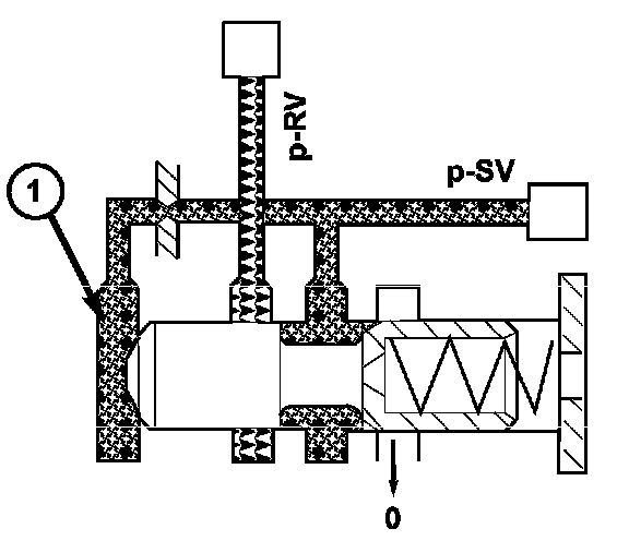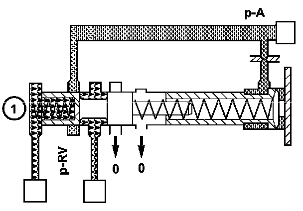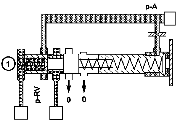 The regulating valve pressure (p-RV) is set at the regulating valve pressure regulating valve (1) in relation to the working pressure (p-A) as far as the maximum pressure.