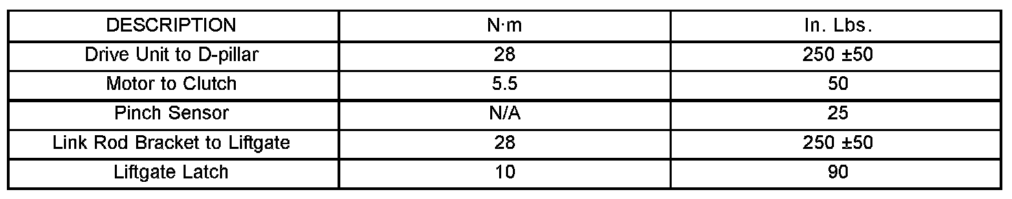 Component Torque Specifications: