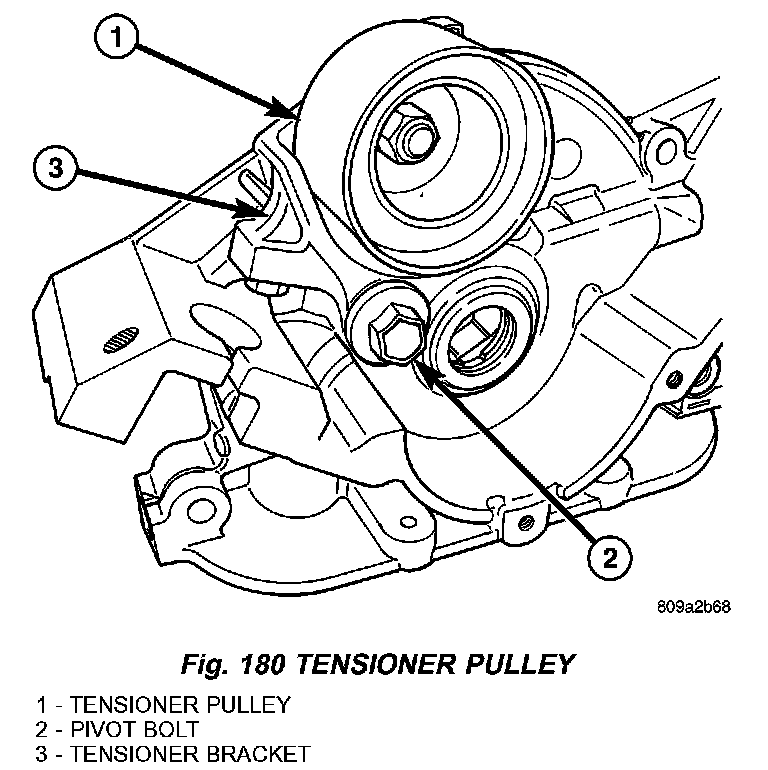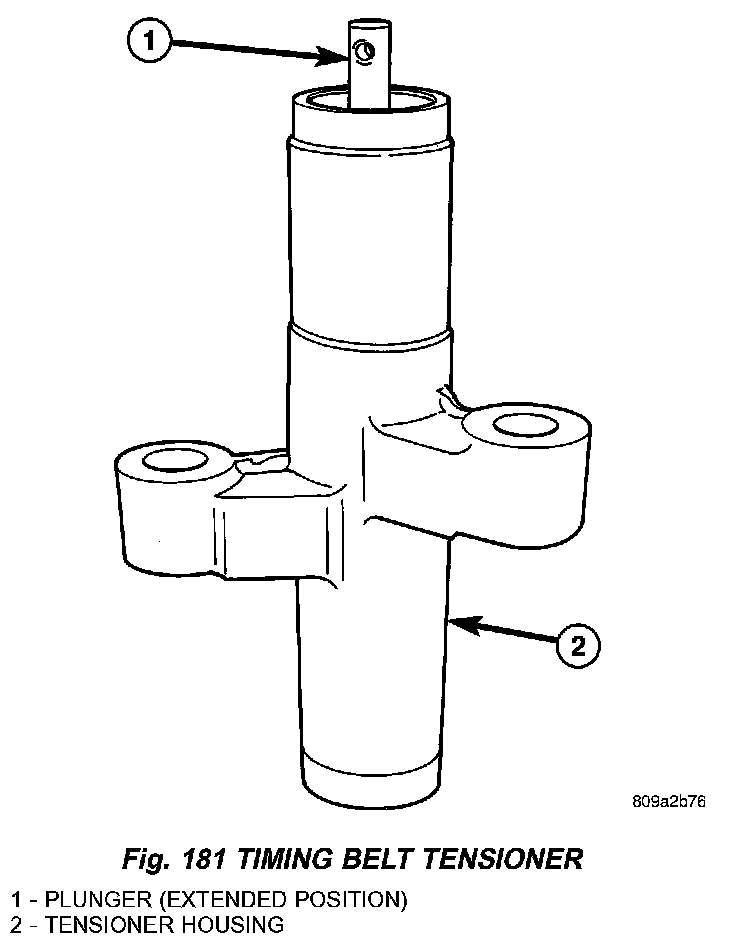 1) Inspect hydraulic tensioner for fluid loss around the plunger seal (Fig. 181). Replace tensioner if leaking.