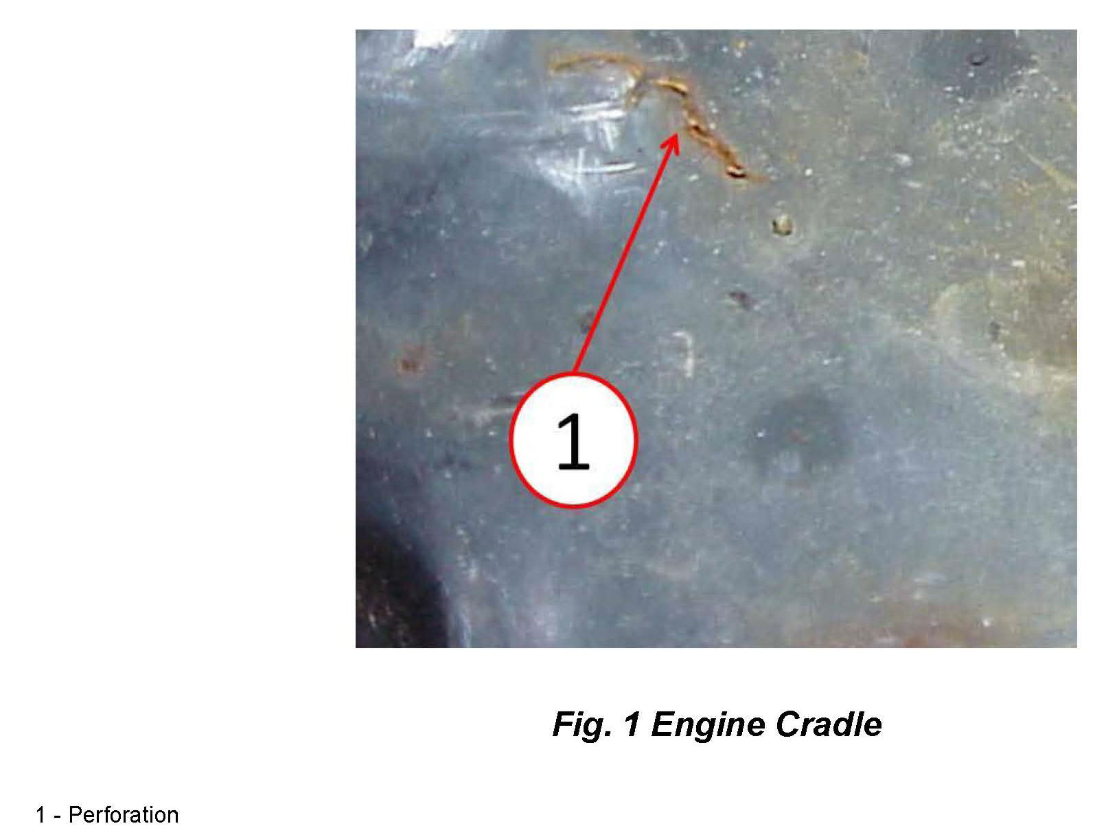 2. Inspect the engine cradle for perforation as shown in (Fig. 1). Was there any perforation found?