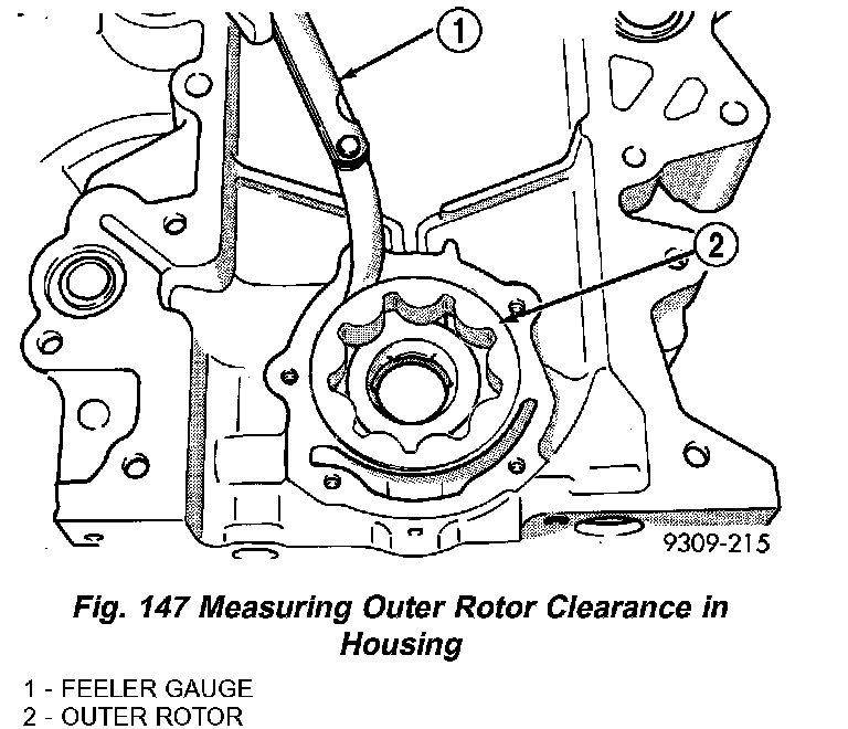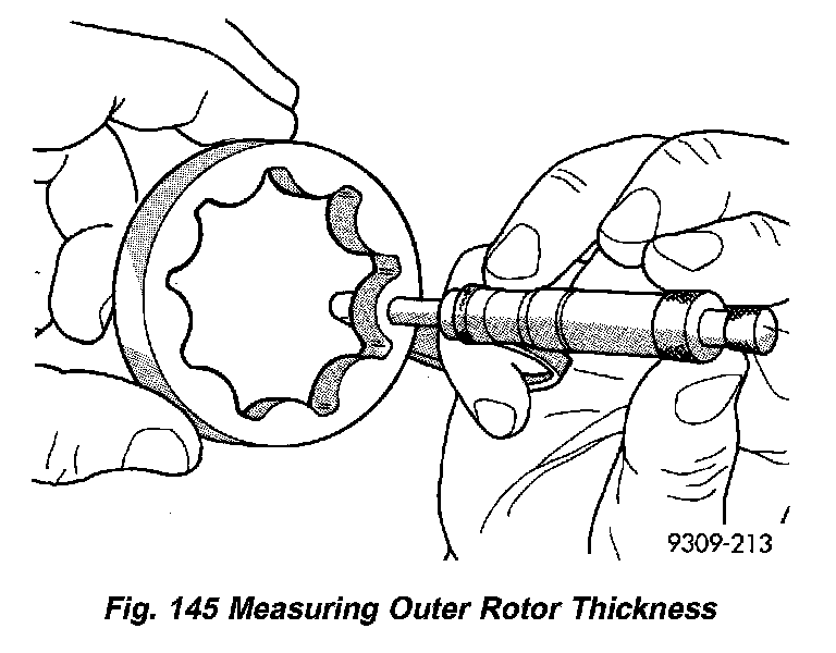 3) Measure thickness and diameter of outer rotor. If outer rotor thickness measures 7.64 mm (0.301 inch) or less (Fig. 145), or if the diameter is 79.95 mm (3.148 inch) or less, replace outer rotor.