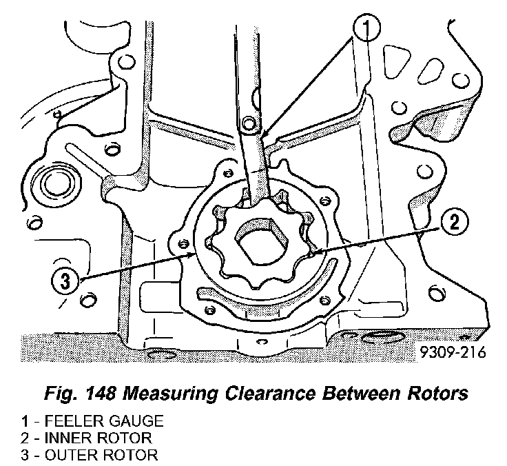 2) Remove oil pump rotors (Fig. 143).