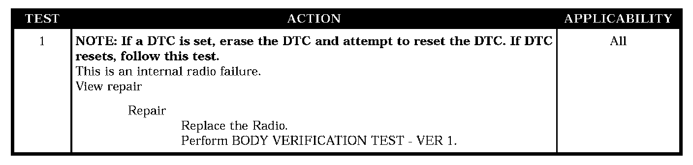 This symptom is diagnosed using the test CASSETTE PLAYER INOP