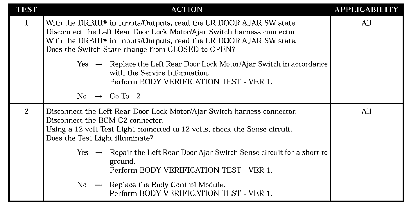 LEFT REAR DOOR AJAR CIRCUIT SHORT TO GROUND