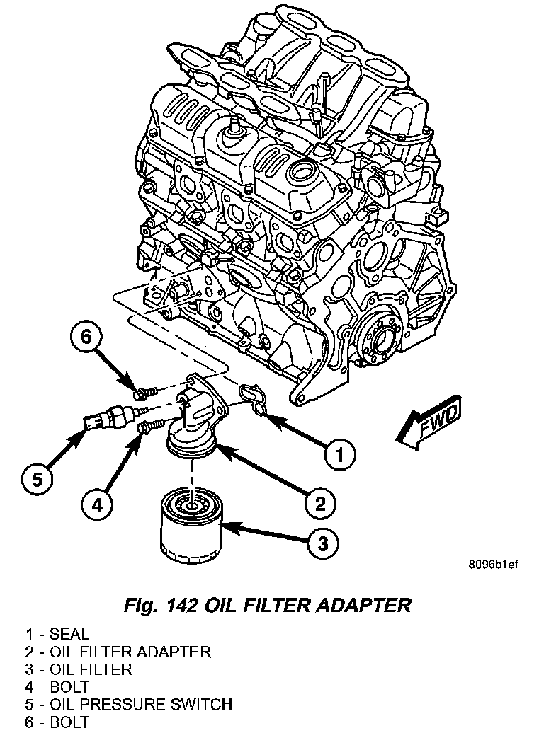 1) Install oil pressure switch. Torque oil pressure switch to 23 Nm (200 inch lbs.) (Fig. 142).