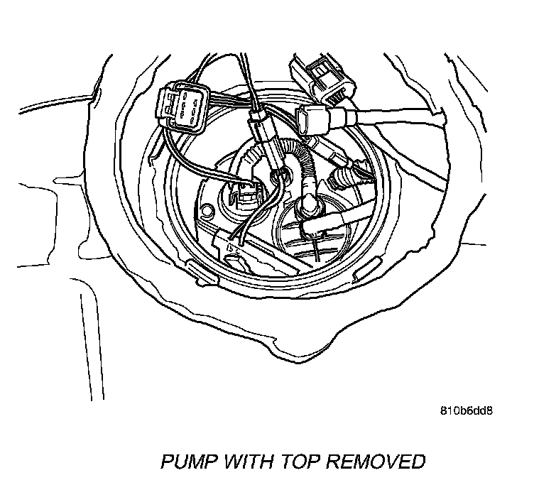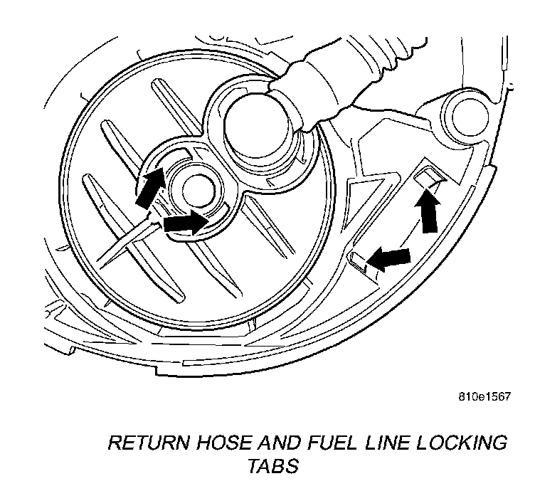 11. Tab location in fuel pump module for return line and fuel supply line.