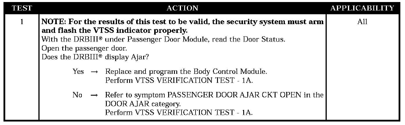 VTSS DOES NOT TRIP FROM PASSENGER FRONT DOOR