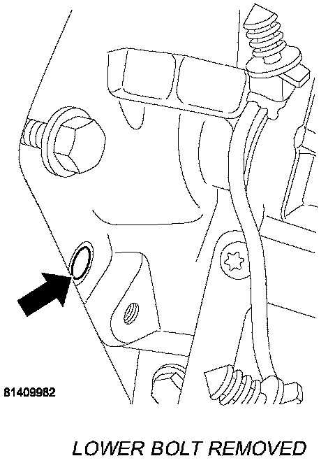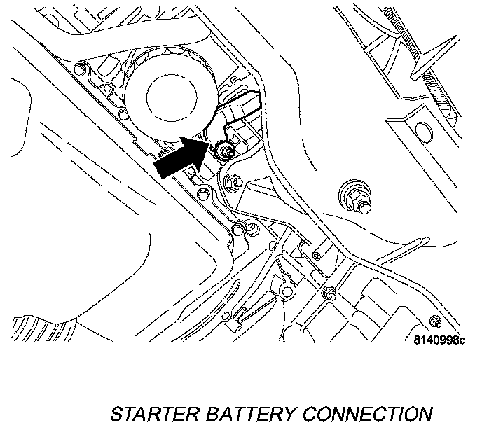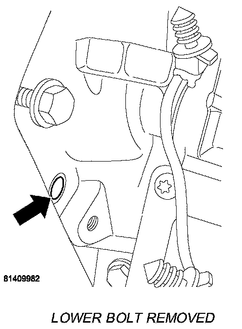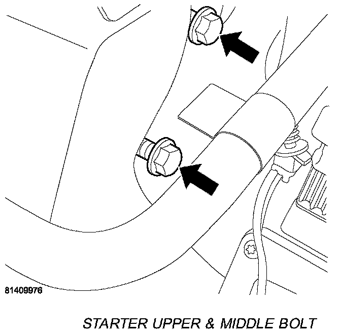 7. Loose install the lower starter bolt, tighten 3 bolts to 47 N.m (35 ft. lbs.).