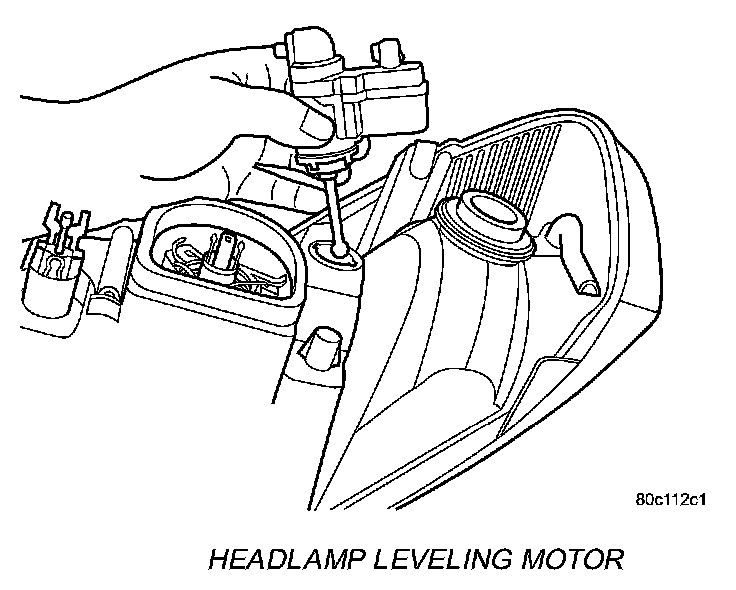 NOTE: Be certain the leveling motor ball stud is fully inserted in headlamp leveling socket assembly.